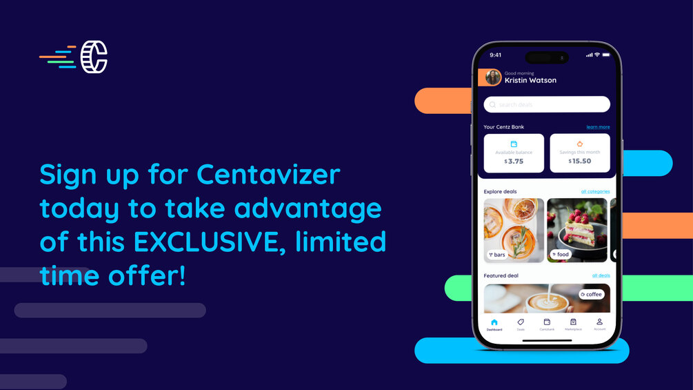 As your Centz adds up, the Centavizer app keeps track of your steps and then deposits money onto your Centz Bank for you to use at our marketplace and with participating brand partners.